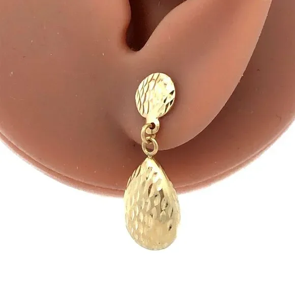 Designer SLC 14K Yellow Gold Textured Teardrop Drop Dangle Stud Earrings