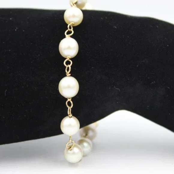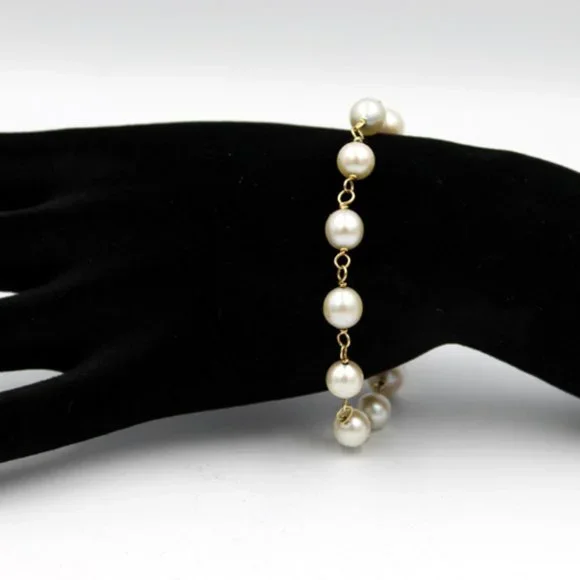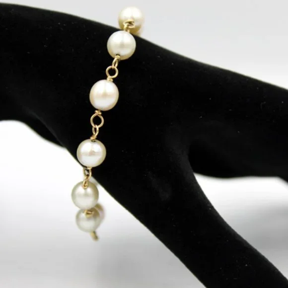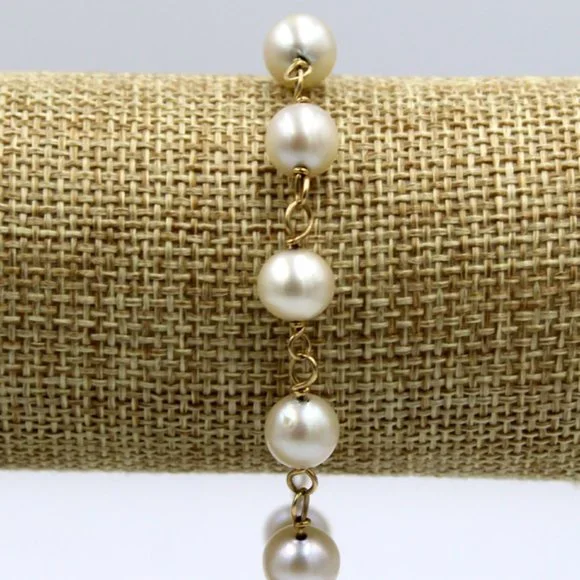 This NWT beautiful 14K yellow gold station bracelet is comprised of genuine cultured pearls with 14k yellow gold links between each pearl stone in the bracelet. It is a stunning...