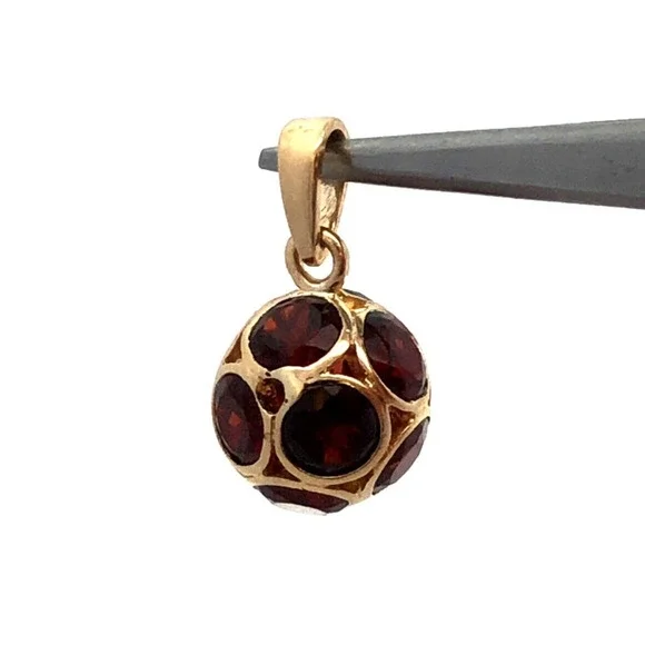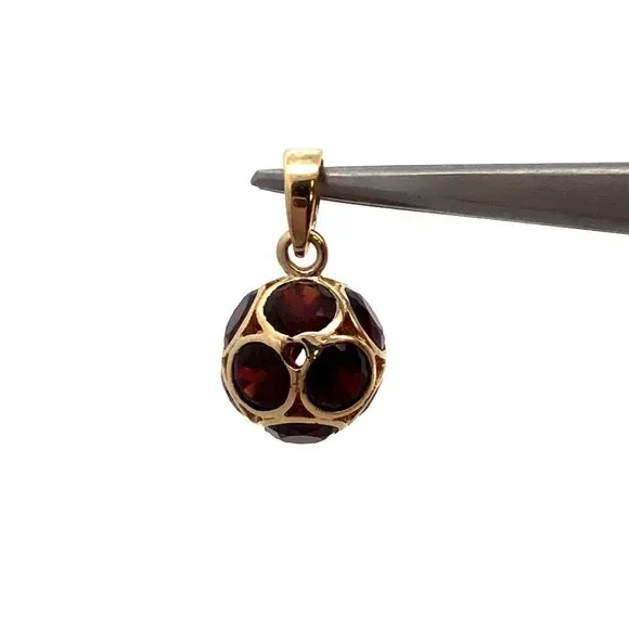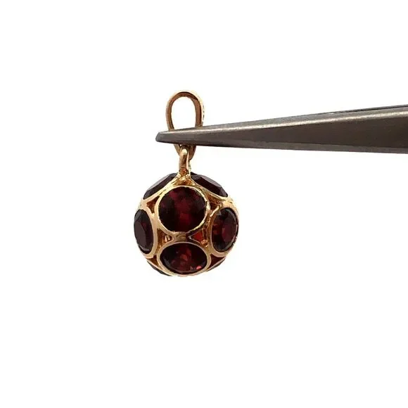 * CID 14K Yellow Gold Round Red Garnet Ball January Anniversary Charm Pendant* Length including bale: 5/8"* Inner bale measures: 4 mm x 2 mm * Width: 3/8"* Weight: 1.7 tgw * Round Garnets measure approximately 4 mm each * Chain is sold separately. * Marked: 14K * CID * Condition: As pictured. * G4697