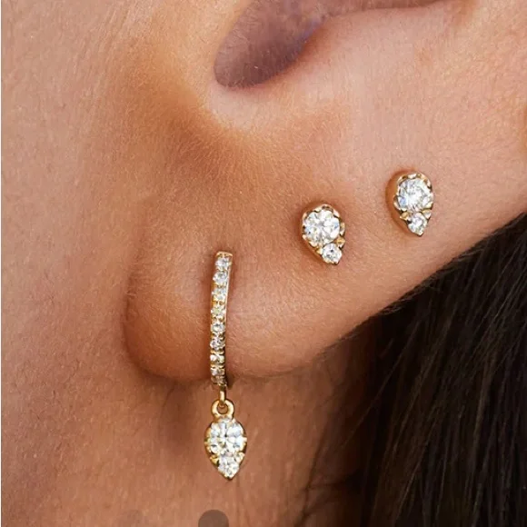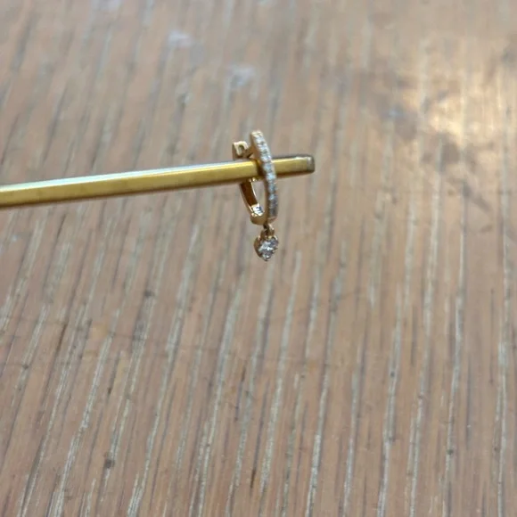 Elegant gold hoop earrings with sparkling silver accents. Perfect for any occasion.Diamond weight: 0.65 for One EarringOuter diameter: 9.5 mmInner diameter: 6 mmTeardrop: 3...