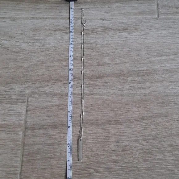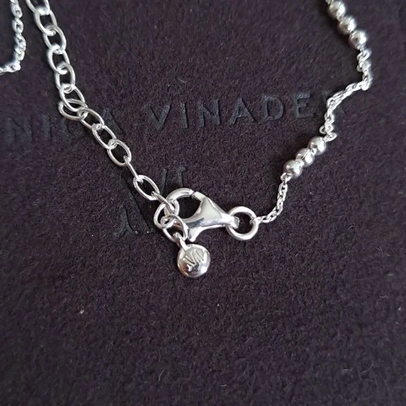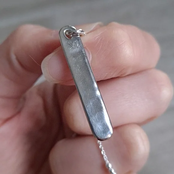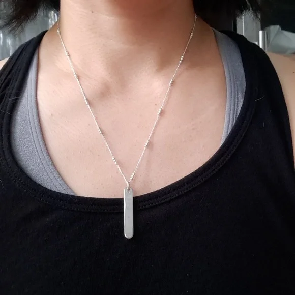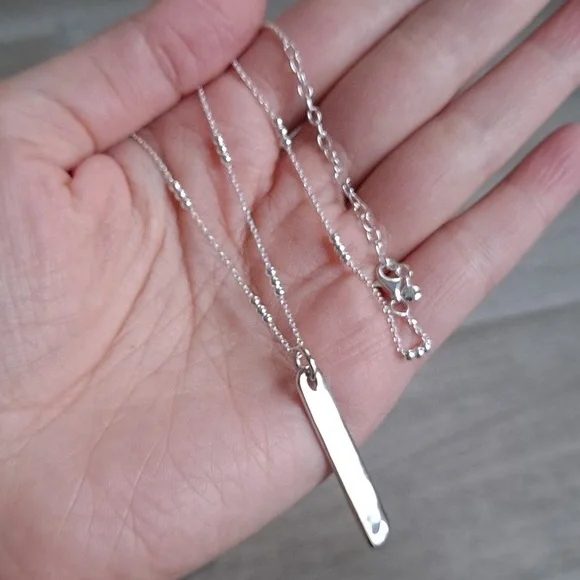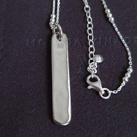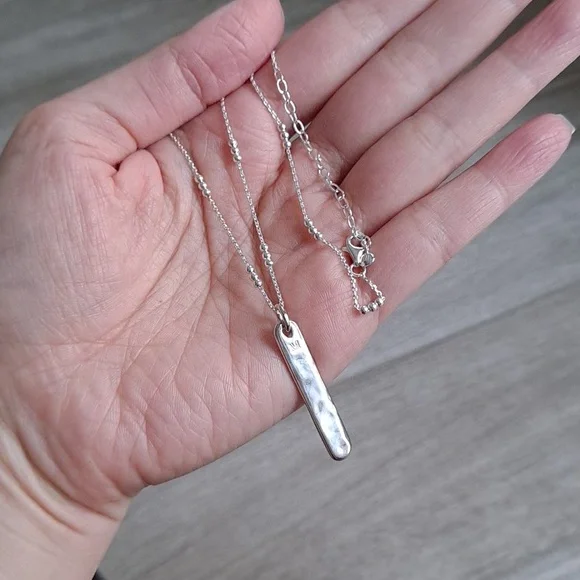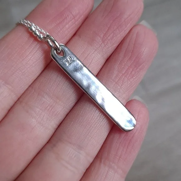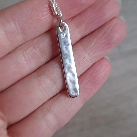 Monica Vinader necklaceSterling silver chain and pendantFine beaded chain with adjustment lengths. Gorgeous, "hammered-effect" bar pendant.Faint hairline scratches on the pendant that is typical if sterling silver jewelry, but nothing major to note. Timeless and classicVersatile and practicalPerfect for everyday wearSimple and chicSo flattering on!Wear alone or layered with other necklaces. Impeccable quality and craftsmanship.