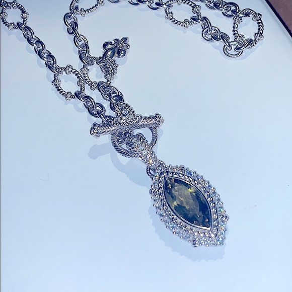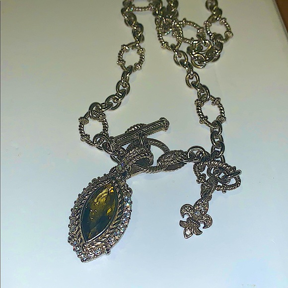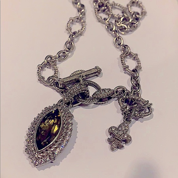 Judith Ripka Charm Crystal CZ pendant NecklacePristine conditionPendant clasp & fur de Li are adorned with crystals