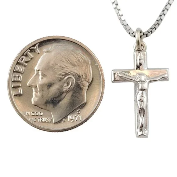 Vintage 14K White Gold Cross Pendant Chain NecklaceThis beautiful piece features a gorgeous 14K gold cross pendant paired with a simple 14K white gold chain!Chain length: 16...