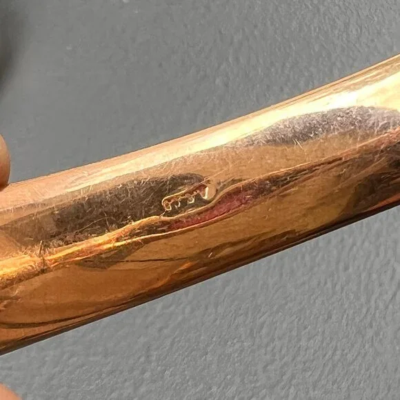 Fabulous ~ Antique Victorian Signed AC & Co ~ rose gold filled Hinged ~ Bangle with hidden clasp (opens with a small push-up button ) ~ The front of bangle has applied scroll...