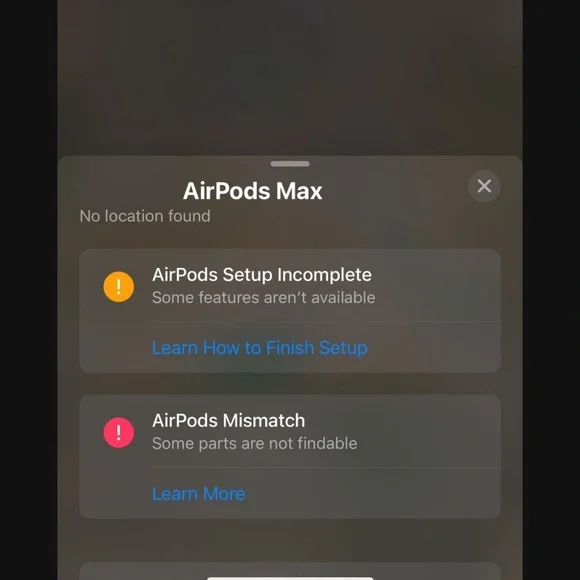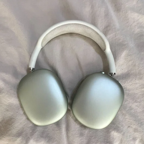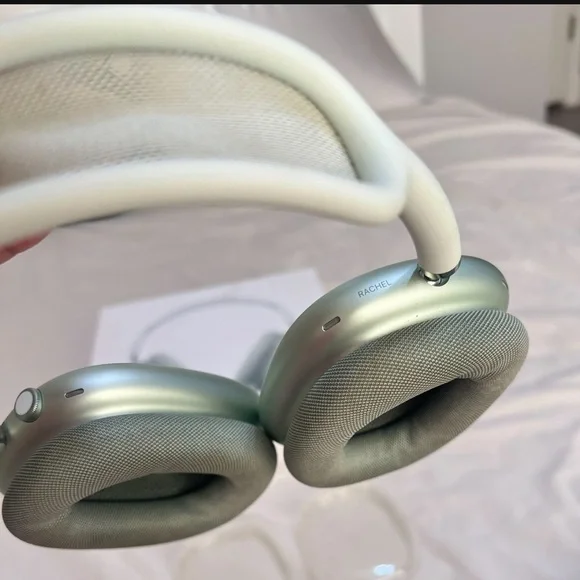 AIRPOD MAX - GREENComes with MagSafe case, original box, clear case for pods, and silicone earmuff protectors if you plan to workout with them or just for extra protection/ aesthetics! (The protectors have been soaked and disinfected). The AirPods work perfectly fine aside from minor issues below. Minor Issues: When I originally bought them from a reseller, the AirPods were still linked to another icloud despite being restarted so "Find My Device" does not work with the Airpods. It will only display an error of "Airpods Mismatched". I will attach a photo to show. The pods also have Rachel engraved on them. Very small, I forget it is even there. The AirPods will be restarted before selling! :)Please DM for anymore questions, concerns, pictures, etc.