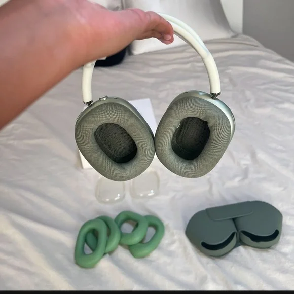 AIRPOD MAX - GREENComes with MagSafe case, original box, clear case for pods, and silicone earmuff protectors if you plan to workout with them or just for extra protection/...