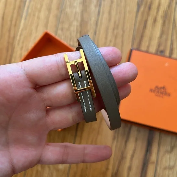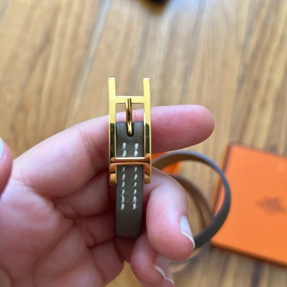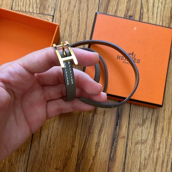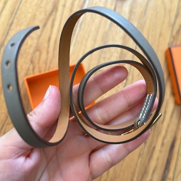 This classic Hermes bracelet is understated and chic. perfect for something dainty but a statement. 29” inches long. Never worn so hardware and leather are in perfect condition