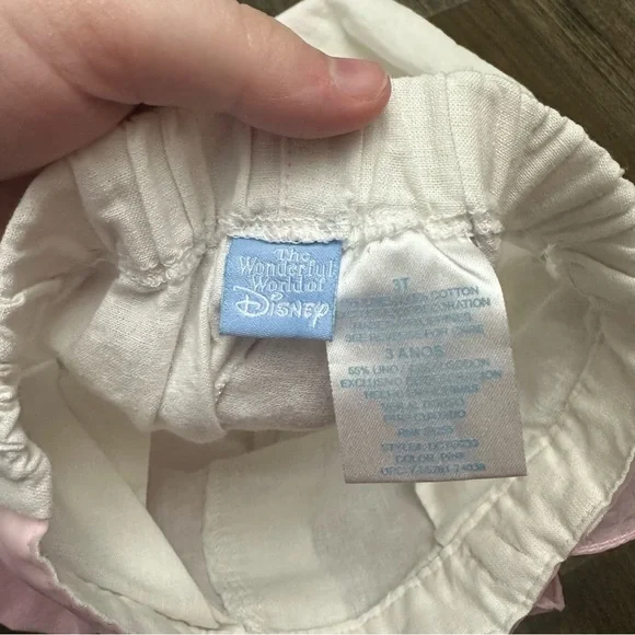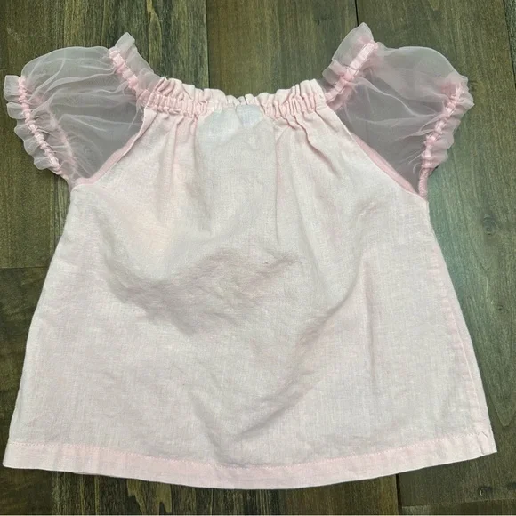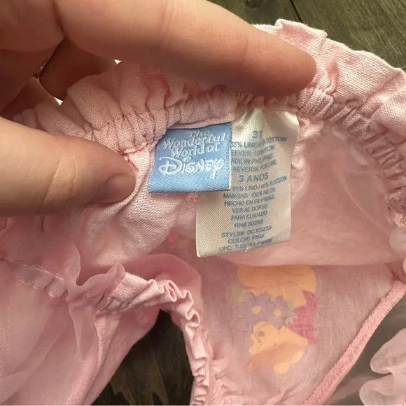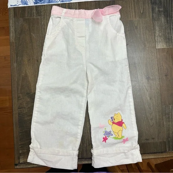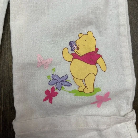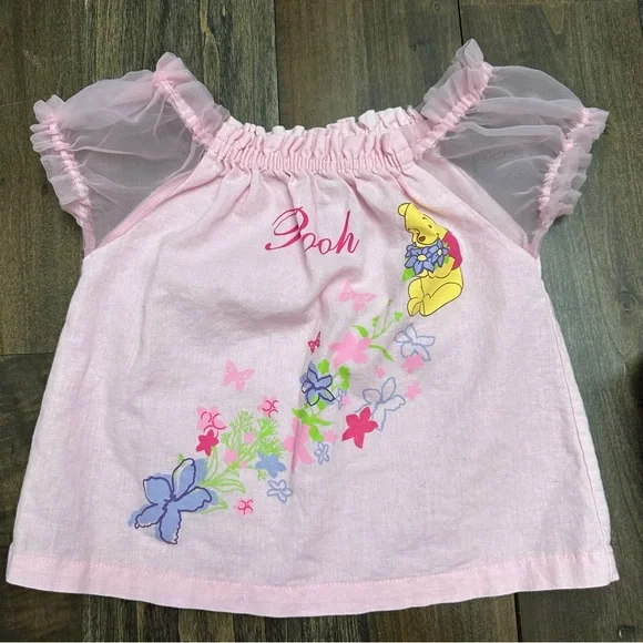 Vtg Y2K Winnie The Pooh Disney Sheer Sleeve Pastel Pink 2 Pc Outfit Set Linen 3T