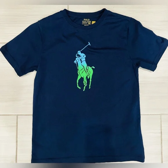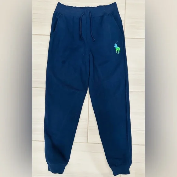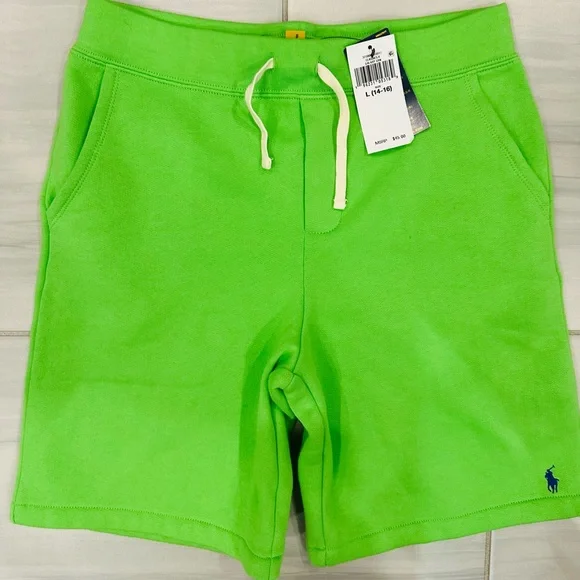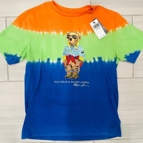 Boy’s Size L (14-16) Ralph Lauren Navy and Green Kids´ Outfit Bundle - 4 items: Navy t-shirt with green polo logo. Bright green shorts (NWT). Tie-dye t-shirt with bear graphic (NWT). Navy joggers with logo.2 items NWT - 2 items excellent pre-worn condition from no smoking, no pet home. Will Not Separate.