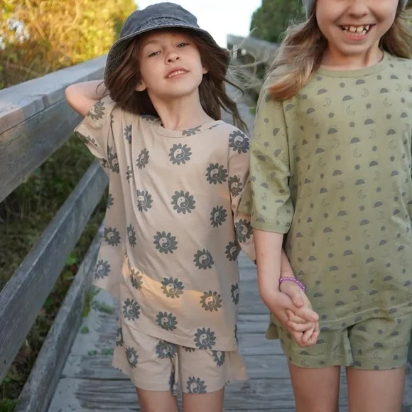 *bundle & save 15%* Brand new in packaging size 12m unisex short and tee shirt daydreamer set - butter soft fabric! **Brand new - priced high because these will be going up in price soon due to tariffs**✿ This is a rare sold out pattern and color combo - fits oversized ✿