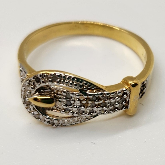 This beautiful designer ring is small and dainty has a 18k gold platted over sterling silver. The Diamonds are round cut.The original price is the true appraised value.