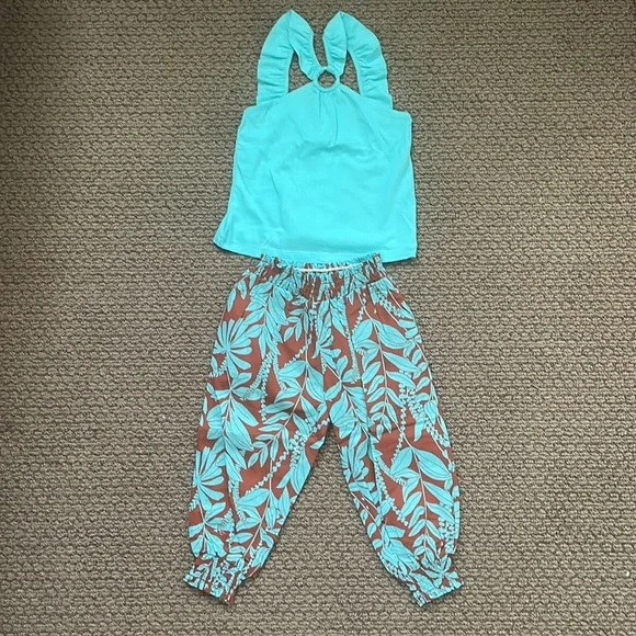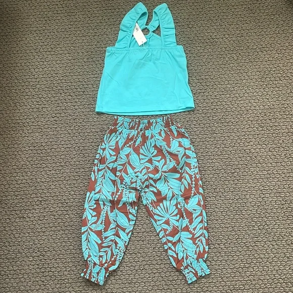 Janie&Jack Ruffle Strap Top & Tropical Smocked Pants