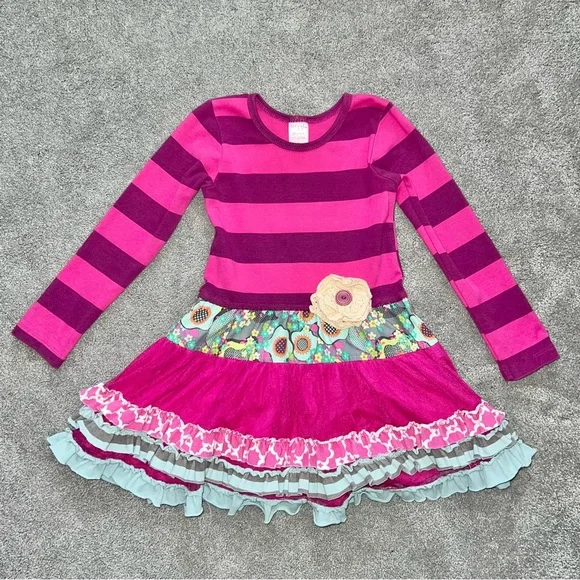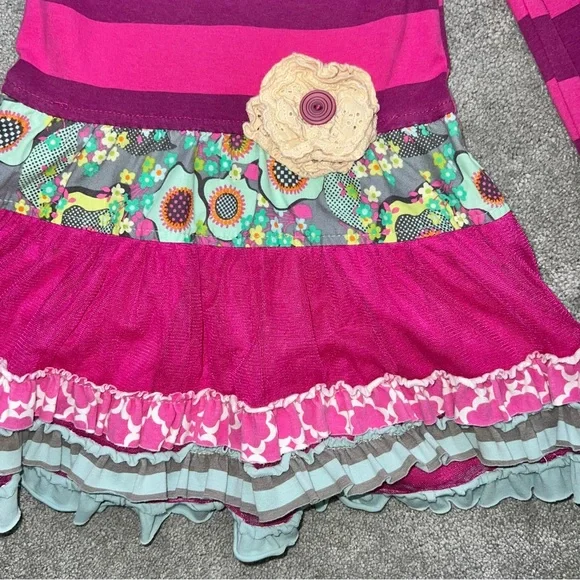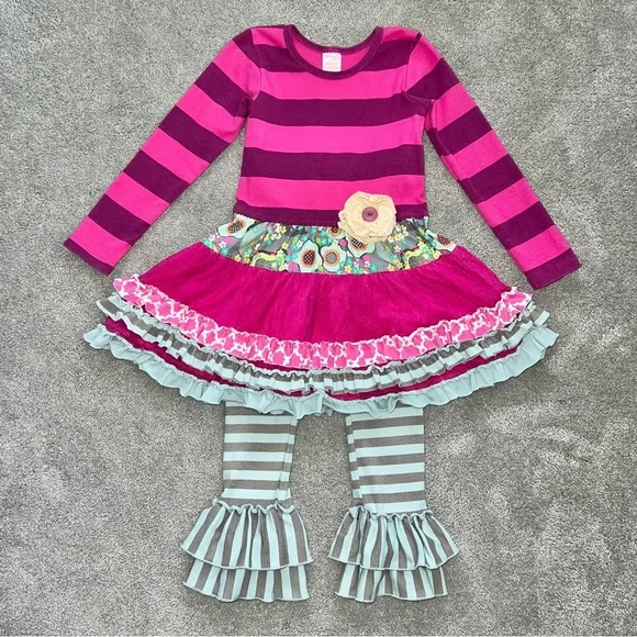 Giggle Moon Girls Eternal Bliss Long Sleeve Tiered Ruffle Tunic with Matching Stretchy Flare Pants. Size: 4