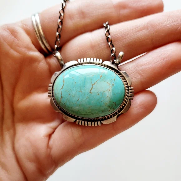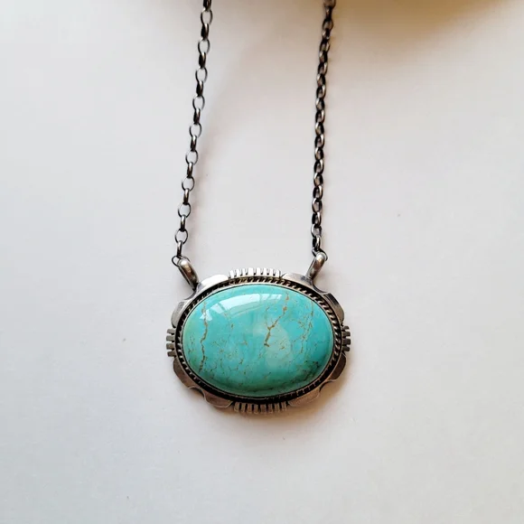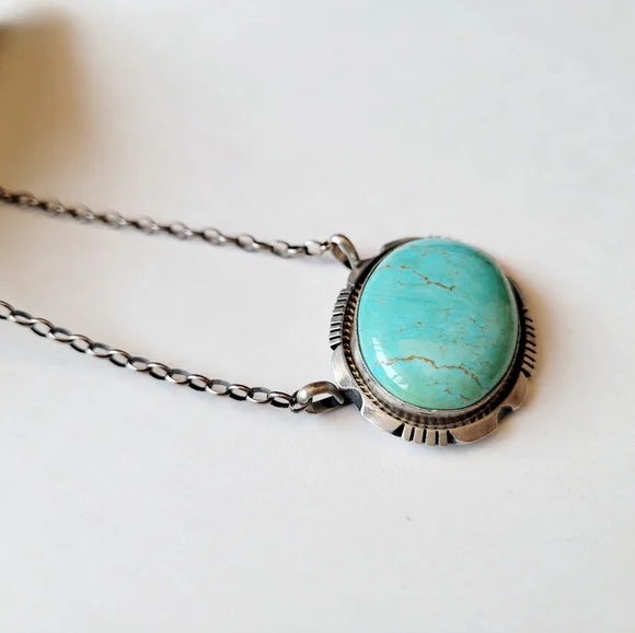 Turquoise and Sterling Silver Necklace Native American Handmade