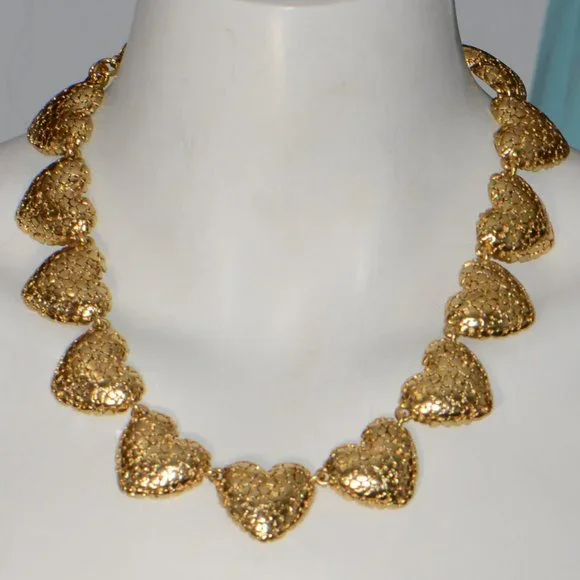 Oscar de la Renta Heart Clusters Gold-tone Necklace