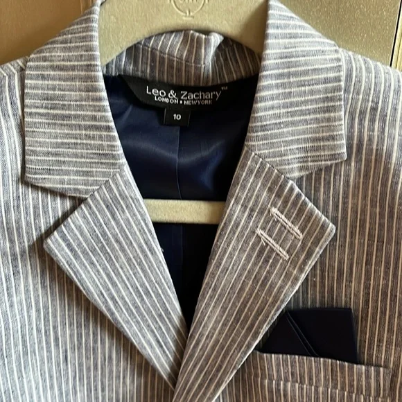 Leo & Zachary Boys Sz 10 Striped Blue Suit. Worn once and in excellent condition. Pet and smoke free home.