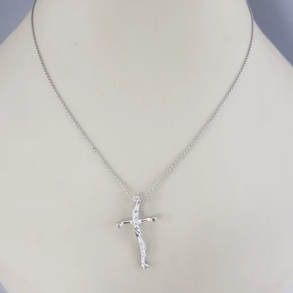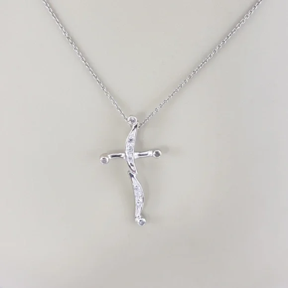 14 Karat White Gold Diamond Cross Pendant-This sparkling cross pendant features 10 round brilliant cut diamonds set in classic 14K white gold.Approximate total diamond weight:...