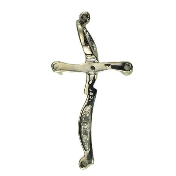 14 Karat White Gold Diamond Cross Pendant-This sparkling cross pendant features 10 round brilliant cut diamonds set in classic 14K white gold.Approximate total diamond weight: 0.14 ct.Diamond color: H-JDiamond clarity: SI-ISize: 31 mm x 17 mmStamped: 585Weight: 1.0 dwt./ 1.7 gr.*Chain not included.Very good condition, professionally polished.Will come packaged in a gift box or pouch (when possible) and will be shipped U.S. Priority Mail Insured.DV03112417KCS