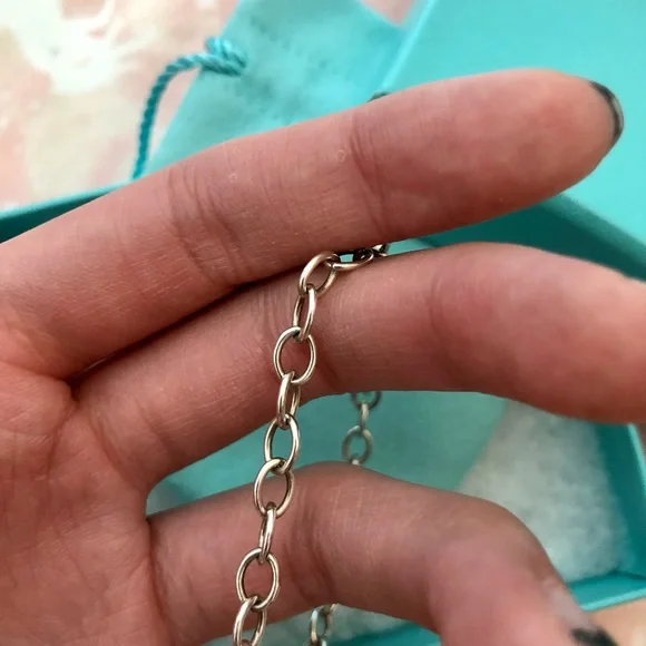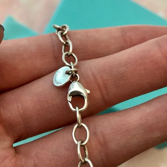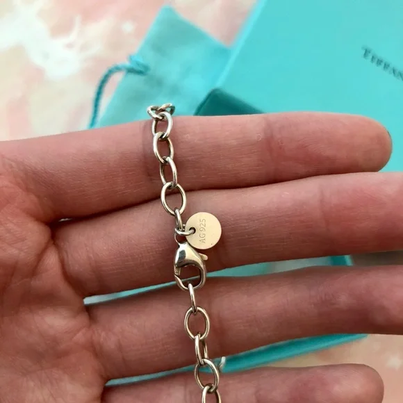 AUTHENTIC!! Like New!!!Never worn925 Sterling SilverTiffany 925 stamped7.5 ” longElegant, goes with everything. Comes with original dust bag, box, and shopping bag.Sold 2- 1 back in stock