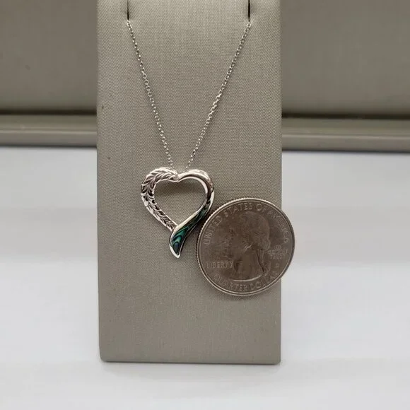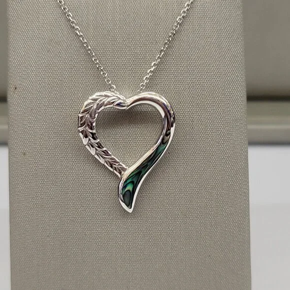Na Hoku Heart with Maile Etching and Abalone Pendant on a 17" Box Chain - 14kt White Gold Auction Includes: Na Hoku Heart with Maile Etching and Abalone Designs Pendant14kt White Gold17" Box Chain2.25 pennyweightPendant/ Necklace is in overall very good, gently used condition with minor normal use, scratches, and nicks