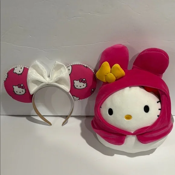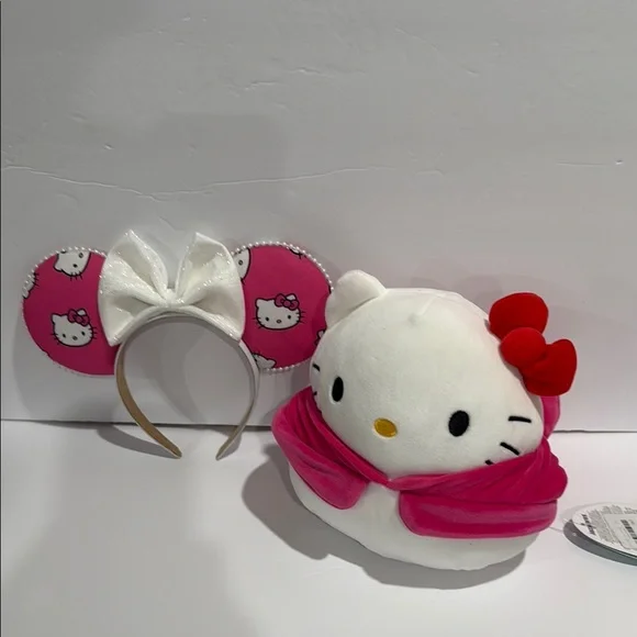 Adorable Hello Kitty set. Includes plush toy and headband. Perfect for fans.