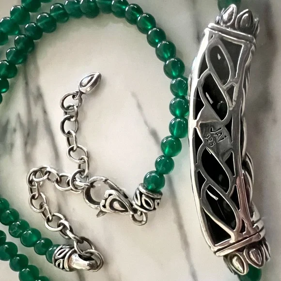 Authentic like New Condition/Unused.Stamped Jai 925Length 16-19 inches (3inches extension) gives a versatile look as a choker or necklace.Please check out photos for detail. Thank you.