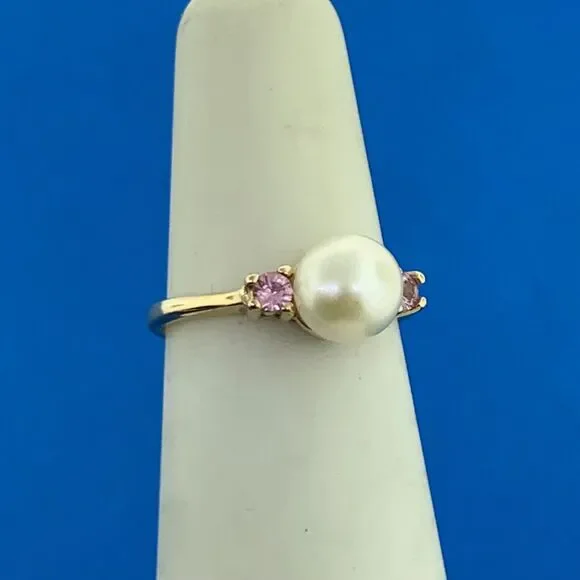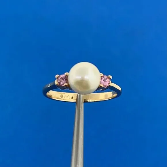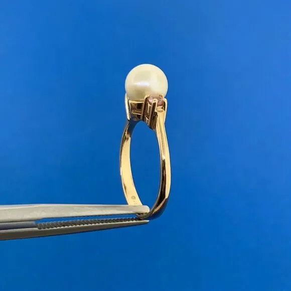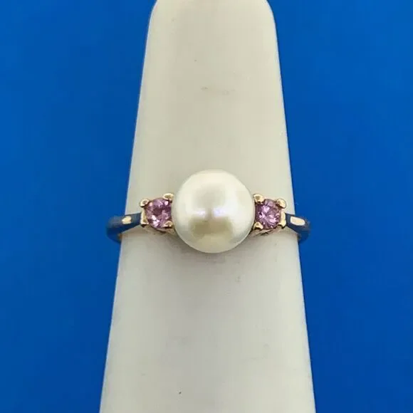 * 14K Yellow Gold Pearl Amethyst Accent Ring* Ring size: 4.5* Top of ring measures: 1/4" x 1/2"* Height: 3/8"* Band width: 2.15 mm* Pearl measures approximately 6.45 mm* Amethysts measure approximately 1.9 mm each* Ring weight: 2.2 tgw* Marked: MAKERS MARK * 14K* Condition: As pictured* Ring can be resized for an additional fee.* G3161