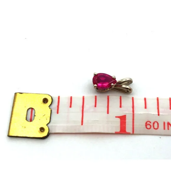 Vintage 14K White Gold Pear Ruby Solitaire Petite Drop Pendant