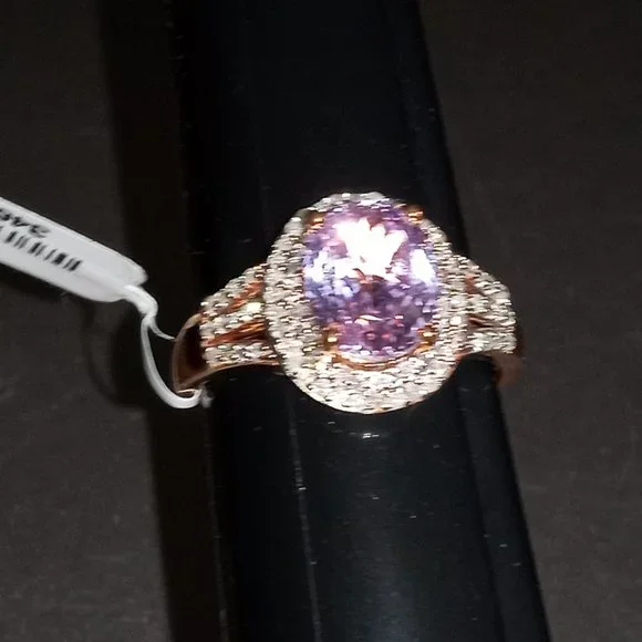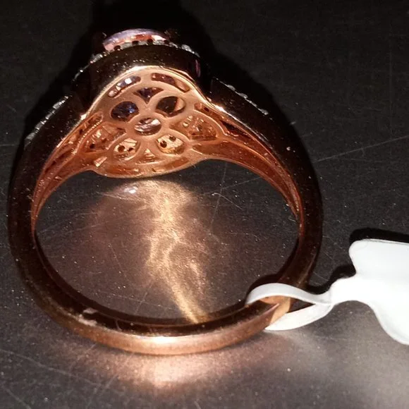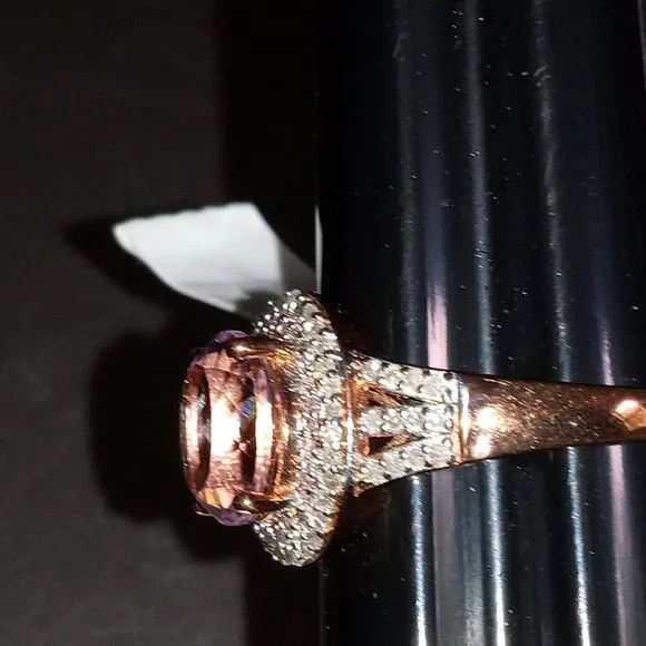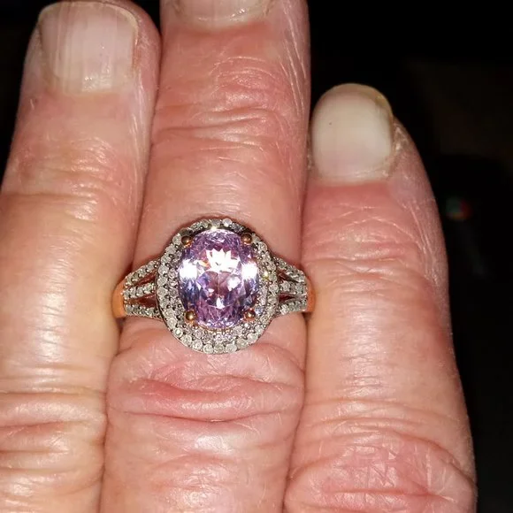 BeautifulAA Kunzite and Pink diamond and white diamond halo ring ! 4.05 Ctw Set in Rose Gold Vermeil over 925 Sterling Silver