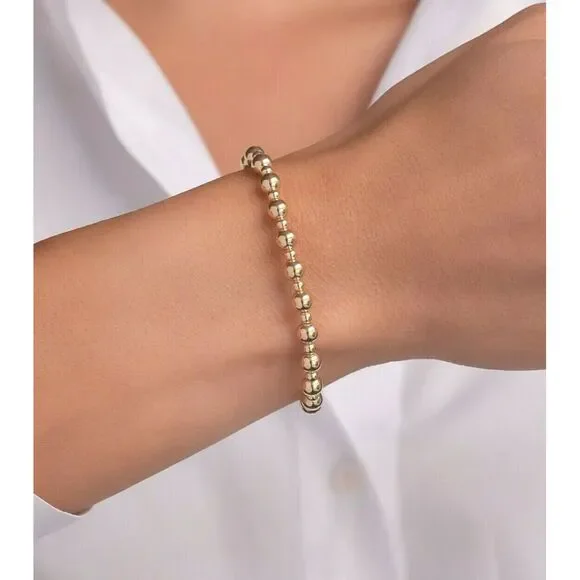Stretch or Clasp 5mm 3mm 14k Solid Yellow or Rose Gold Bead Bracelet stack