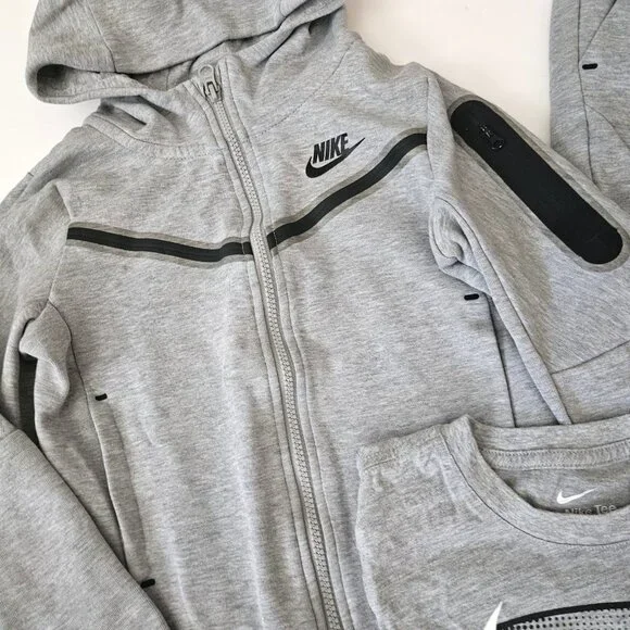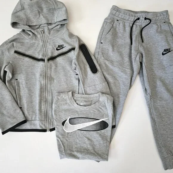 Nike Tech Boys Grey Fleece Hoodie Jacket Tee T-Shirt Joggers Pants SetSizeXS hoodie & pants, 6-7 tee (runs small)VGUCKitty Friendly Smoke-Free Household