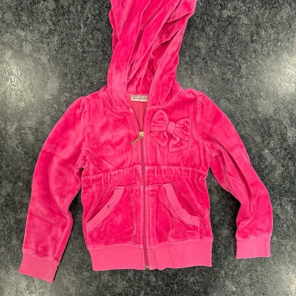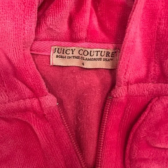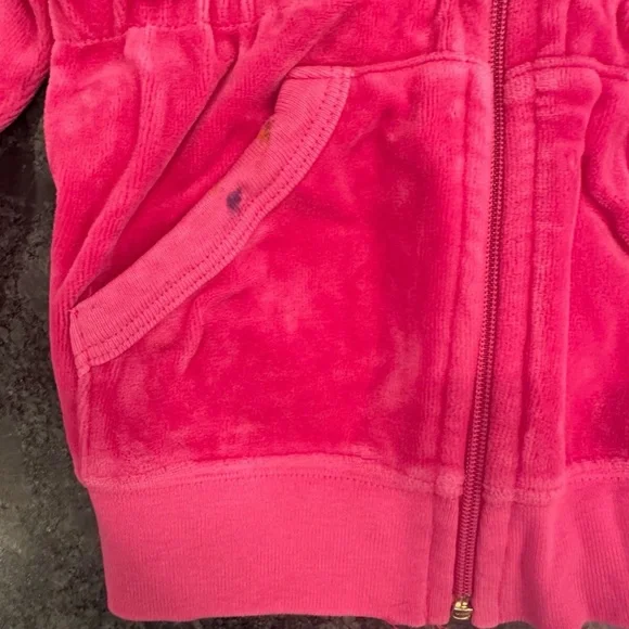 Girls Juicy Couture Matching 3 Piece Setsize 4very good conditiononly hung to drythere are two spots on the jacket as shown in photodon´t know if they will come out in washPurchased from Neiman Marcus