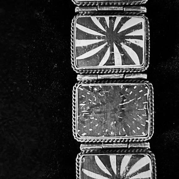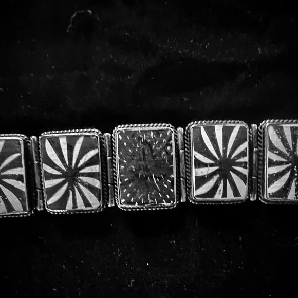 Exquisite Vintage American Indian Pottery bracelet set in silver