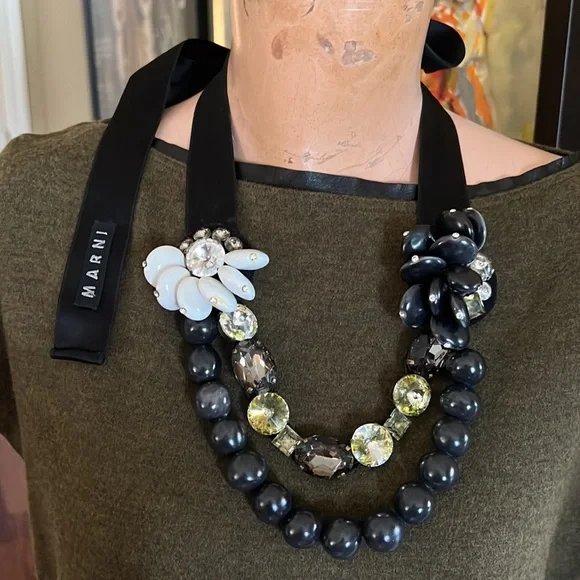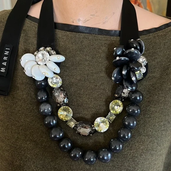 Marni necklace/belt beautiful with rhinestones embedded throughout beautiful, black beads and versatile for many different outfits