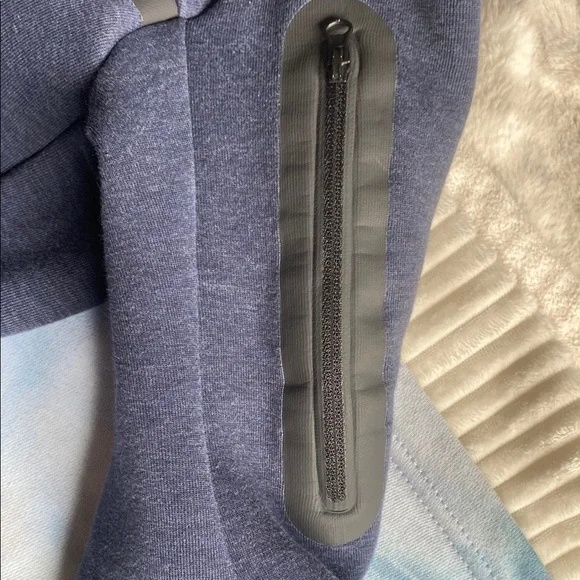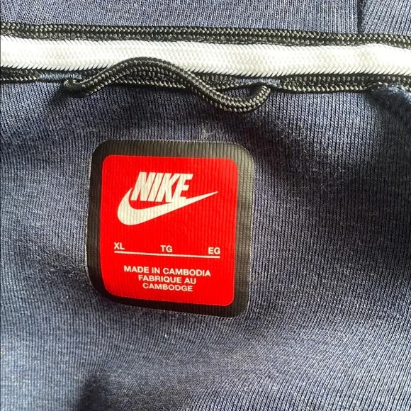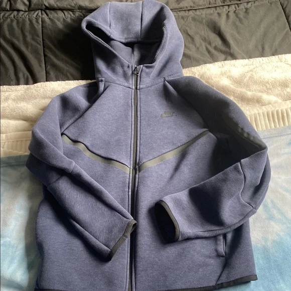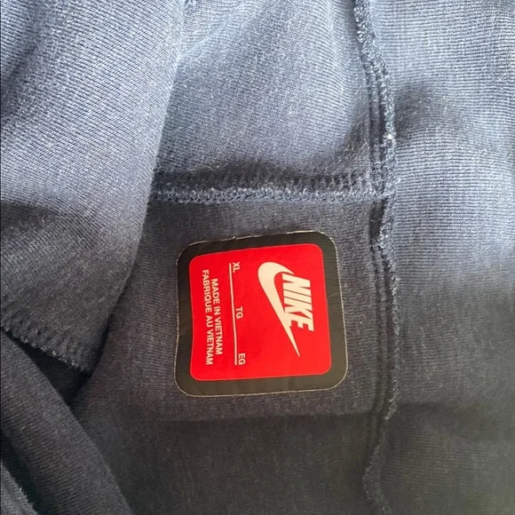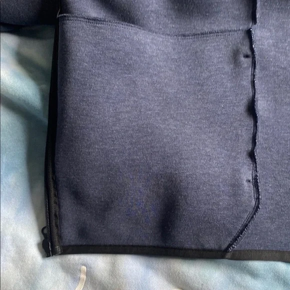 Comfortable Nike hoodie in navy blue. Features a modern design with subtle accents. Ideal for everyday wear. This navy blue Nike Tech has only been worn about 7 to 8 times.