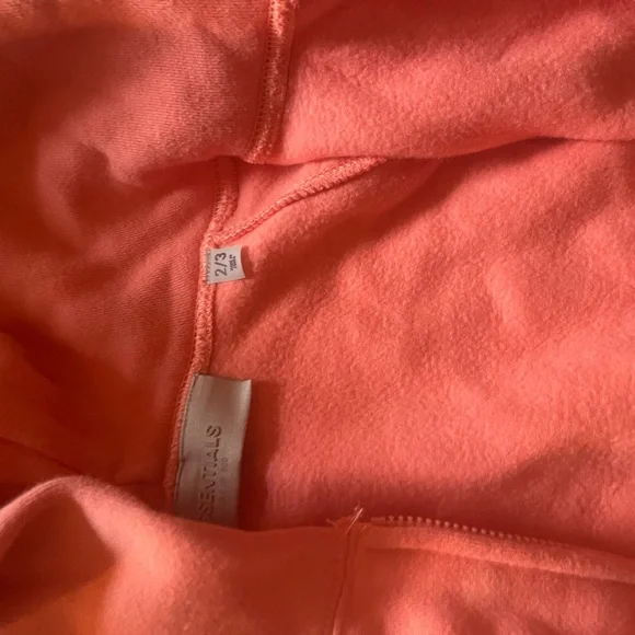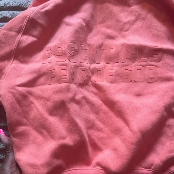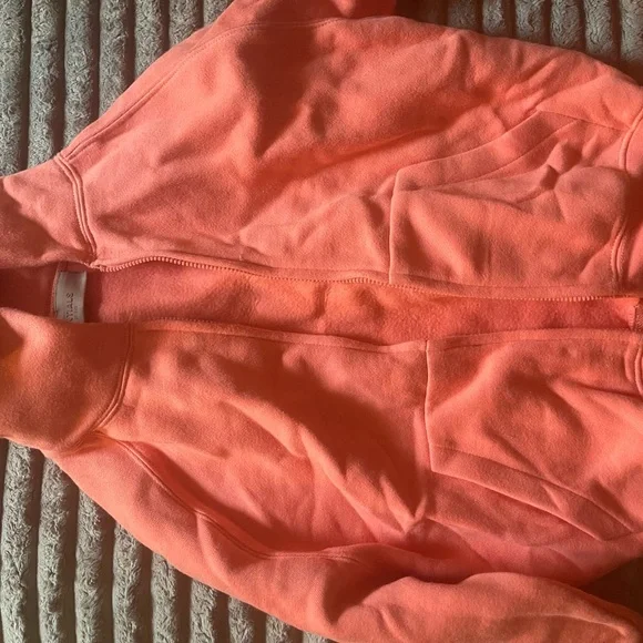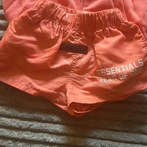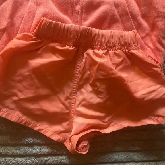 Bright coral hoodie and shorts. Perfect for casual wear.
