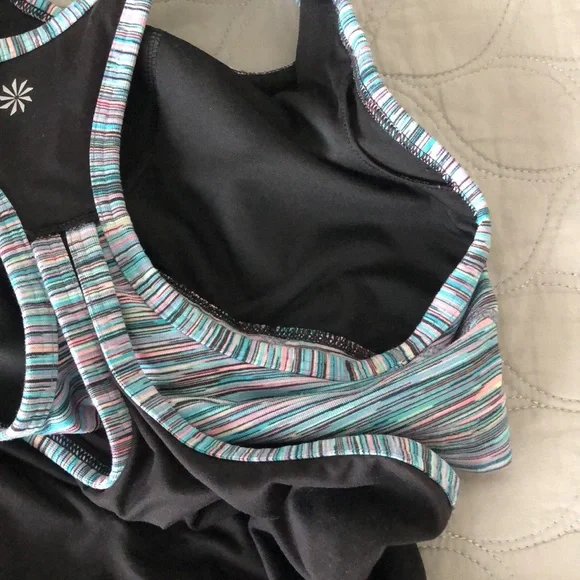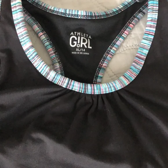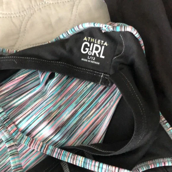 Athleta Girls SetSize of the black tank top: XL/ 14Size of other tank top and shorts: L/12Both tank tops have built in bras, But No padsSpandex shorts Super comfy