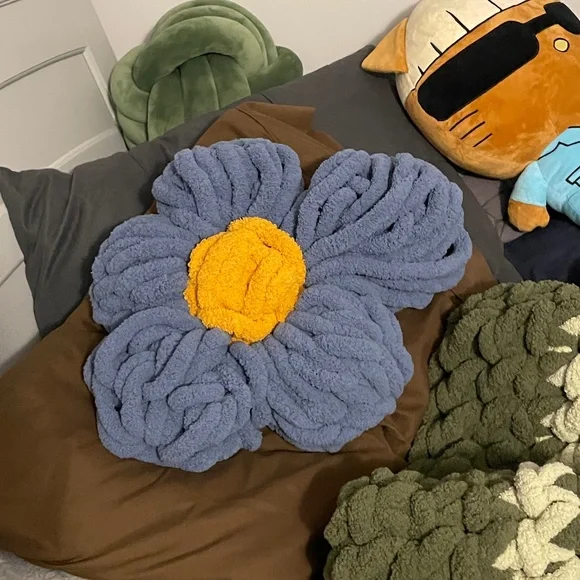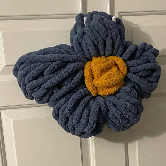 Simple imperfect flower crocheted with chunky yarn If someone wants to buy it they can not really looking to sell it I just want to see the market for it⚠️this is a test listing it is my first time doing this please let me know by dming me or commenting how much you would buy it for⚠️