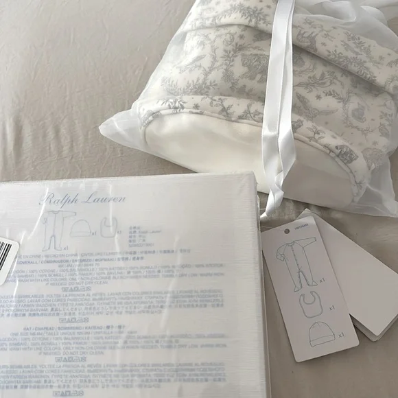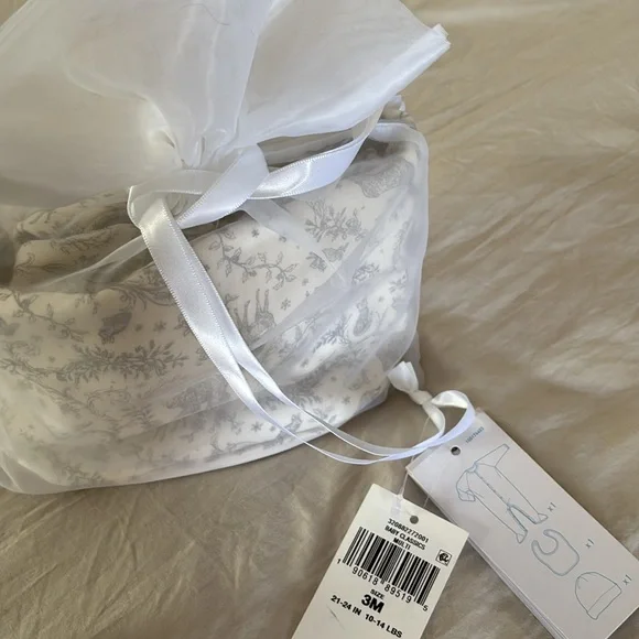 Brand New w/ TagsBag Set (3mos) - 1 Onesie, 1 Bib, 1 BeanieBox Set (6mos) - 1 Onesie, 1 Bib, 1 Beanie Not selling separately, no exceptions