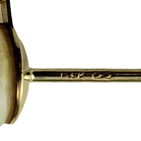 14 Karat Yellow Gold Pearl and Diamond Stud Earrings-These elegant earrings each feature one cultured pearl (8 mm) and one round brilliant cut diamond set in 14K yellow gold.Push...