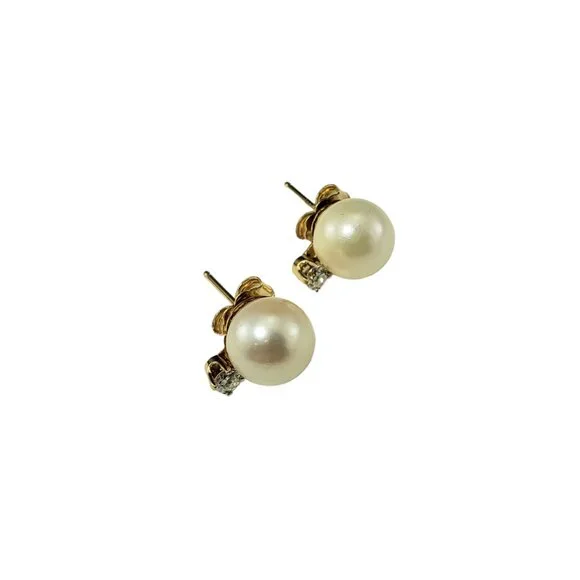 14 Karat Yellow Gold Pearl and Diamond Stud Earrings #17587