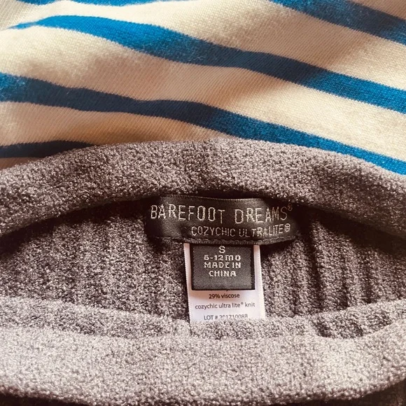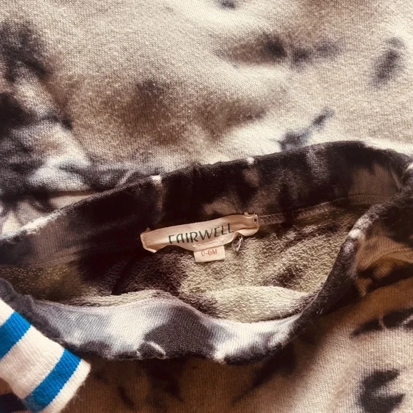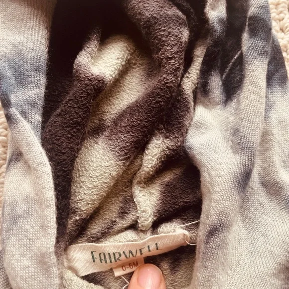 Barefoot Dreams fuzzy sweater and pants 6-12 mFairwell Tie-dye matching set 0-6mMaison Labiche French blue striped onesie 6mAll in great used condition!
