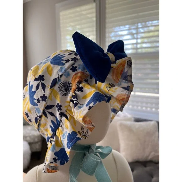 Handmade Toddler Dress Set Blue Velvet Bonnet 12-18 months Velvet Bows