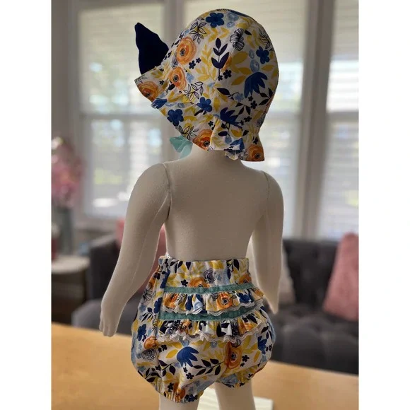 Elevate your little one´s wardrobe with this adorable handmade toddler dress set, complete with a charming blue velvet bonnet and matching bloomers! Crafted with love and...