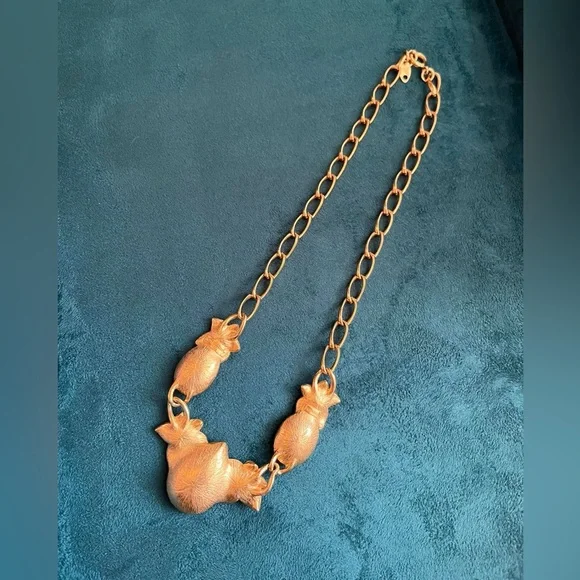 Rare 1970´s Trifari by Kunio Matsumoto Gold Plated Pink Lily Flower Necklace.