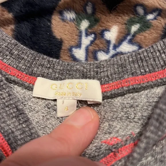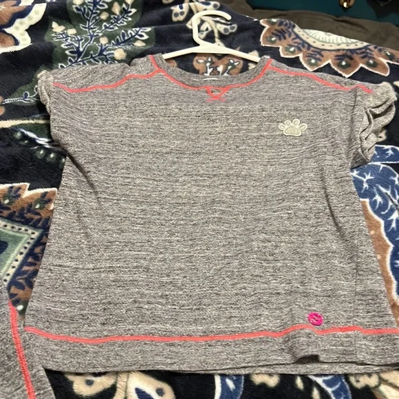 The paw prints were added to cover a flaw in the knee so my granddaughter could continue to wear (see last pic) hole is/was only in one knee. Shirt needs ironing lol otherwise good condition. Only put paw print on shirt to please child. Still super cute. Most tags removed hence price.