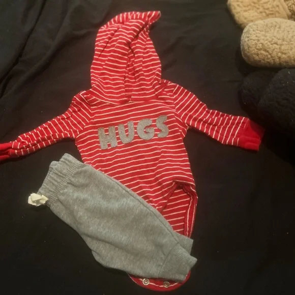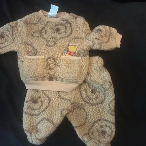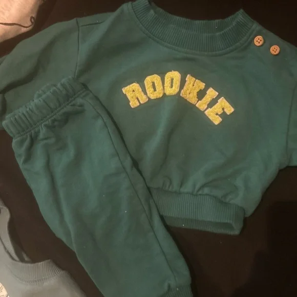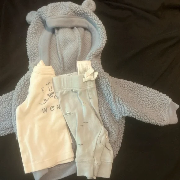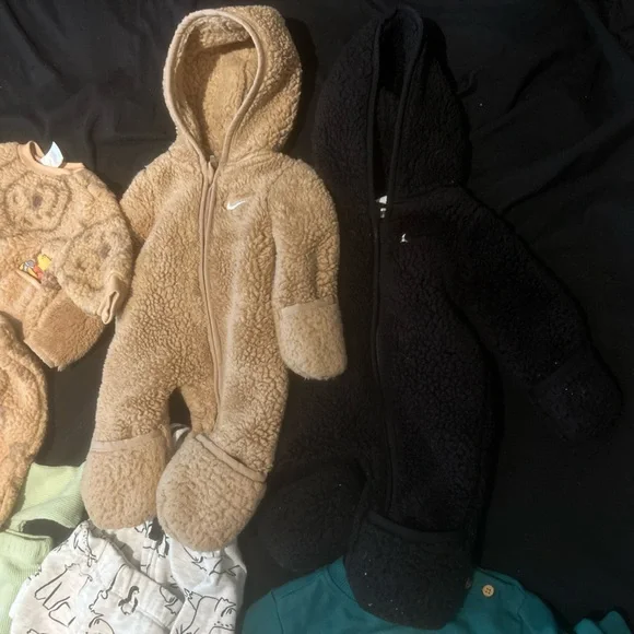 Adorable green sweater with snowman design. Cozy beige fleece vest with brown accents. Perfect for a stylish and warm outfit.