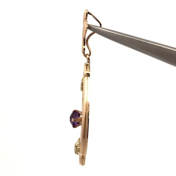 Designer Memco 10K Yellow Gold Round Amethyst Floral Floral Oval Pendant