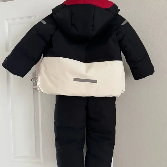 Zara Boys’ Snow Ski Jacket in black & off white with bib in black. There is some dark color rubbed off on the white part of the jacket from washing as shown. Other than that,...