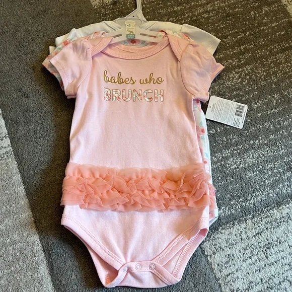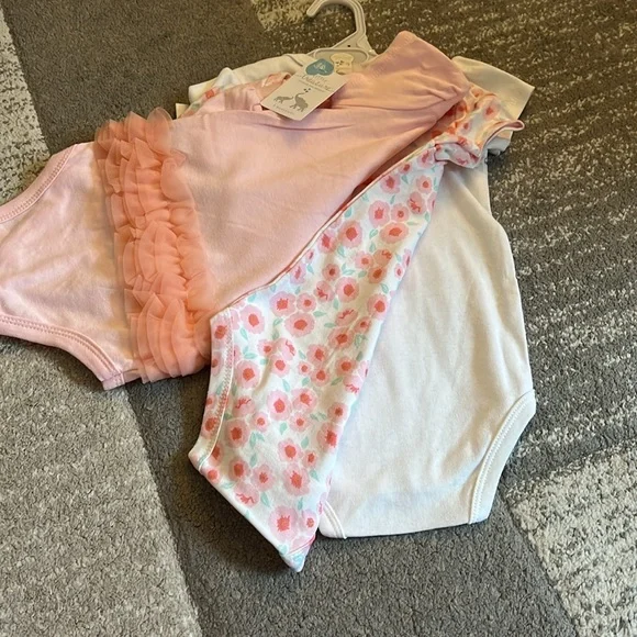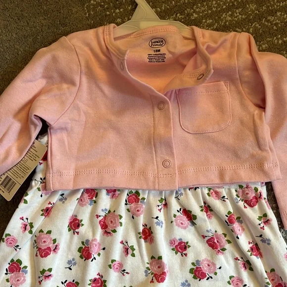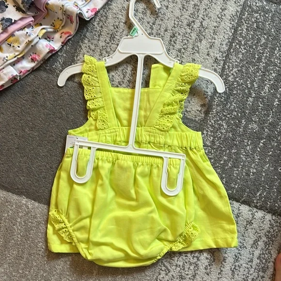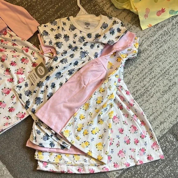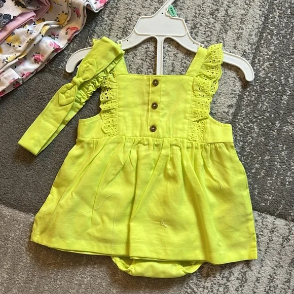 5 dresses, one with cardigan 3 bodysuits 2 piece outfit with headband